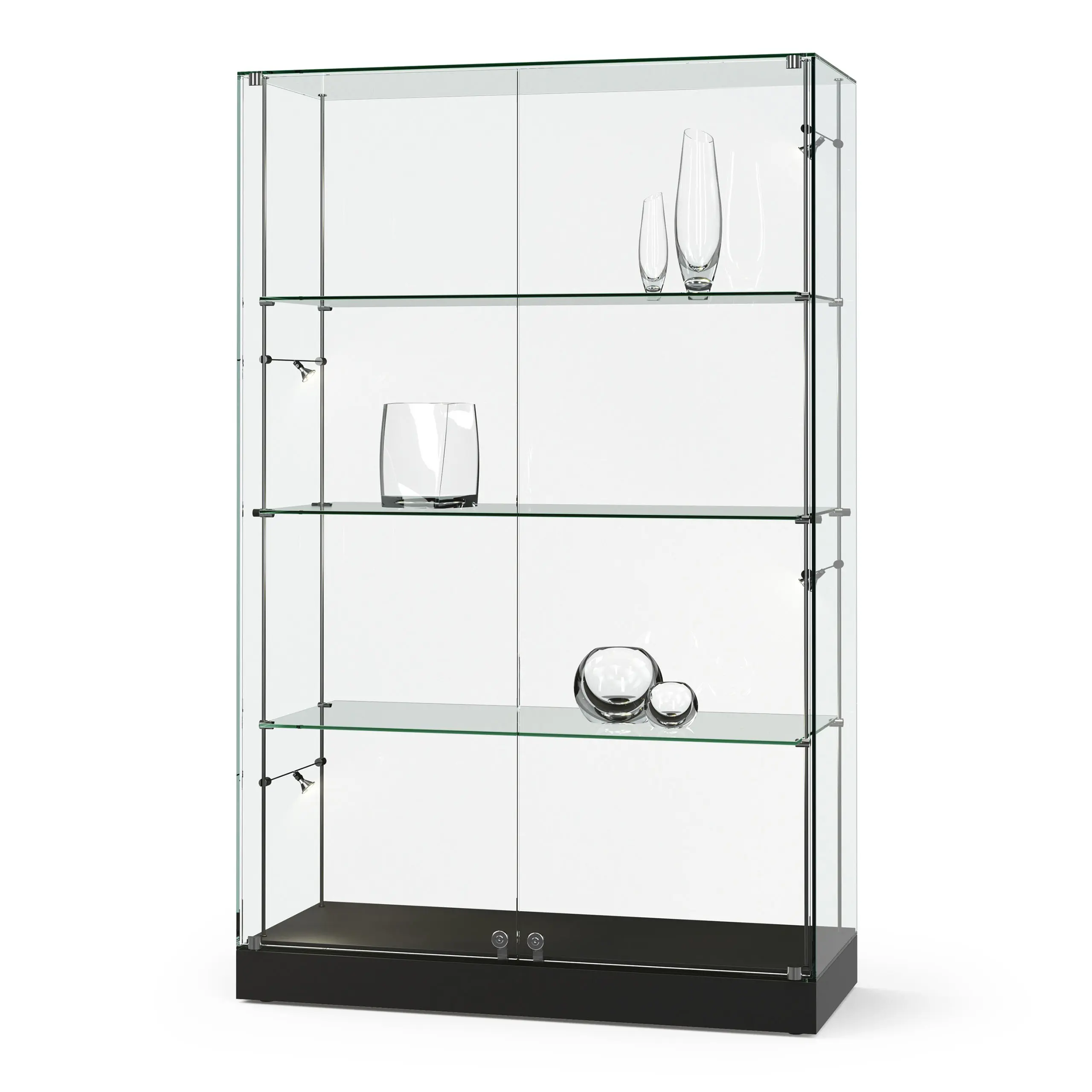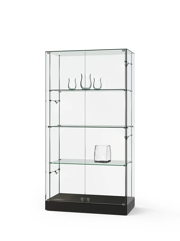 Standvitrine in transparenter Ganzglasbauweise mit ESG-Sicherheitsglas